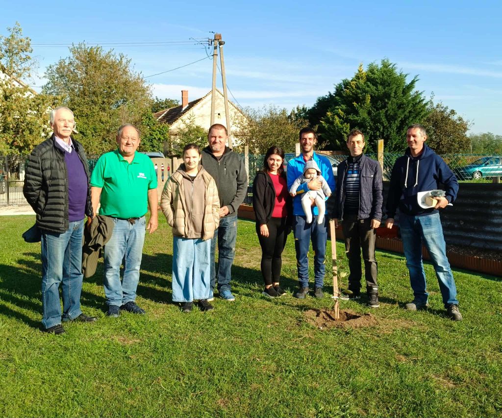 -Ősszel az első faültetésünk Bobán volt, majd követte Celldömölk, Lesenceistvánd és Nagylengyel. A két legtávolabbi helyszínünk Hosszúhétény és Sárbogárd volt, ahová örömmel látogattunk el – a többórás utazás és a nagy távolság sem jelentett akadályt, hiszen minden egyes faültetés egy újabb lépés a régi magyar fajták megmentése felé.
