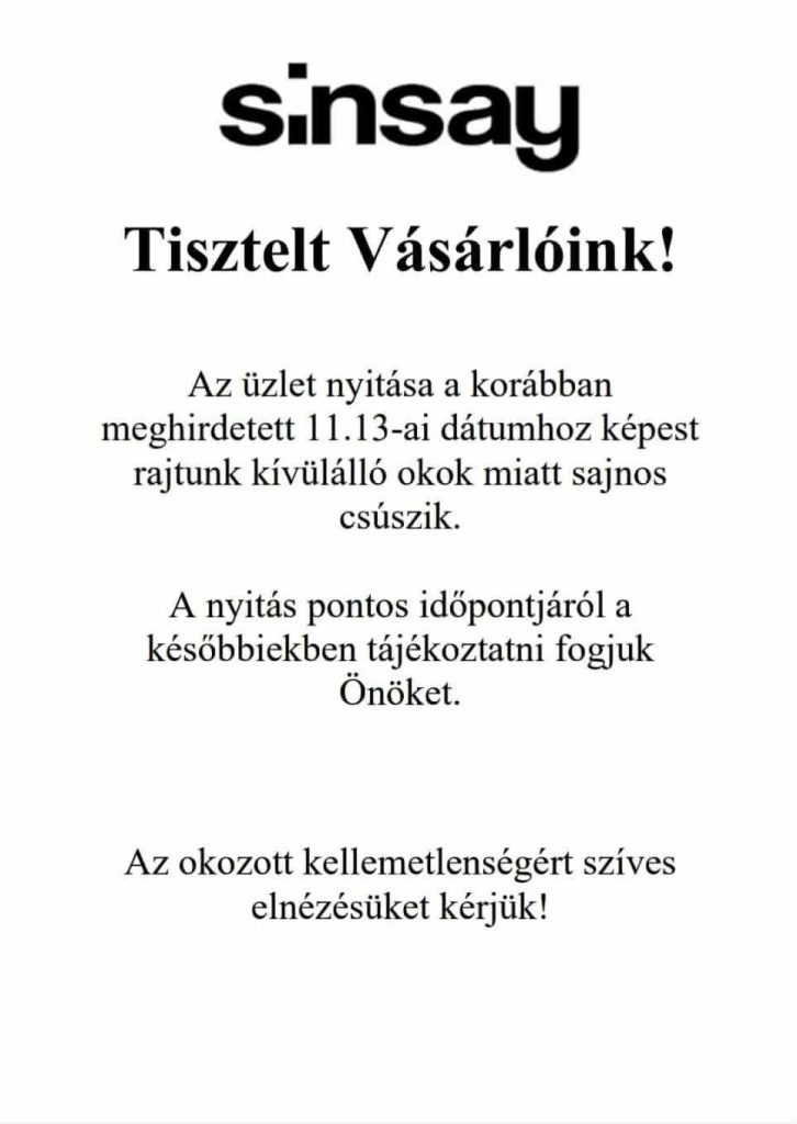 Azóta a fejlesztés látványosan halad: augusztus 27-én a JYSK már megnyitotta kapuit, a Sinsay divatüzlet megnyitása csütörtökön lett volna,de technikai okok miatt halasztva, a TEDi háztartási áruházé pedig pénteken várható (nyitási akcióról lentebb). A többi üzlet nyitásával kapcsolatban olvasónk informált bennünket, november 27-én EcoFamily, december 11-én Kik megnyitója lesz.
